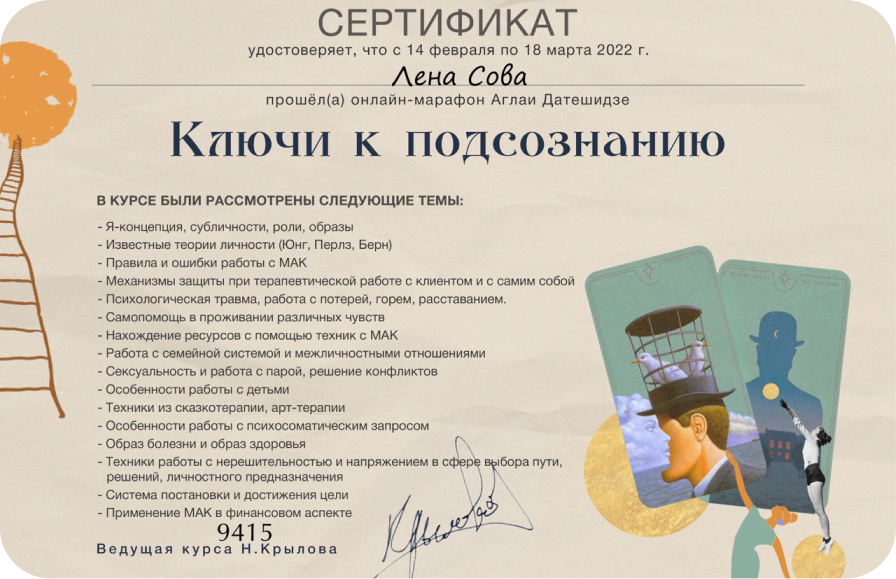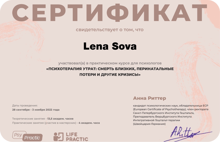Я благодарю Леночку за прекрасную доброжелательную подачу, атмосферу во время знакомства и обсуждения техник познания себя, своего "внутреннего" ребёнка, как быстро принимать решения, проживая с фокусом на себе - "Здесь и сейчас"!